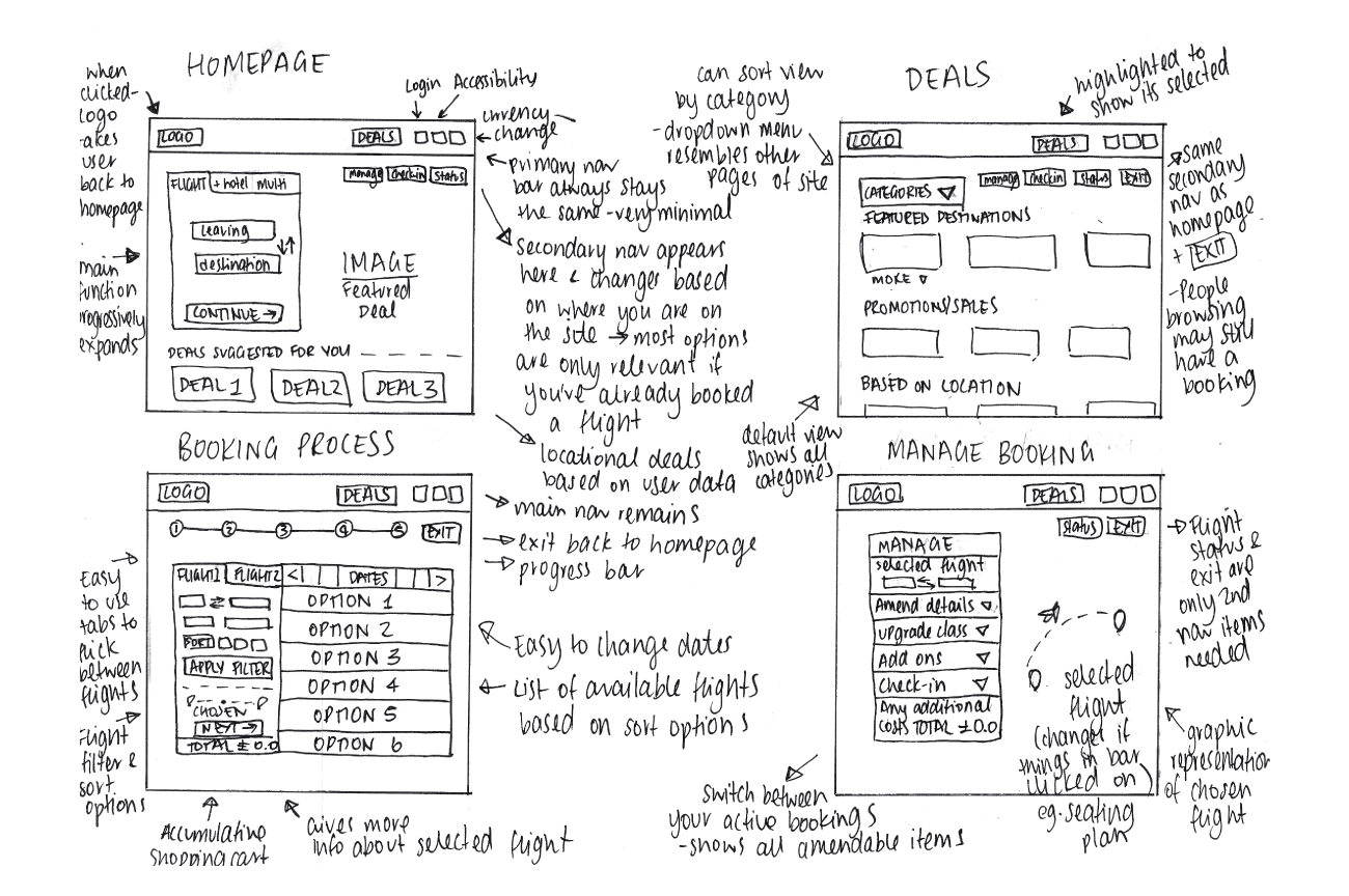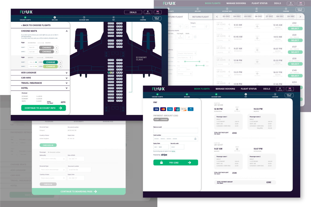 As part of my dipolma in User Experience Design, I was required to carry out a complete UX process, by conducting user research on current airline booking websites, analysing this research, preparing and presenting the results, establishing areas of competitive advantage, designing a website that solved all user issues discovered, creating an interactive prototype, re-testing the prototype and then creating a wireframe that could be handed to a development team.