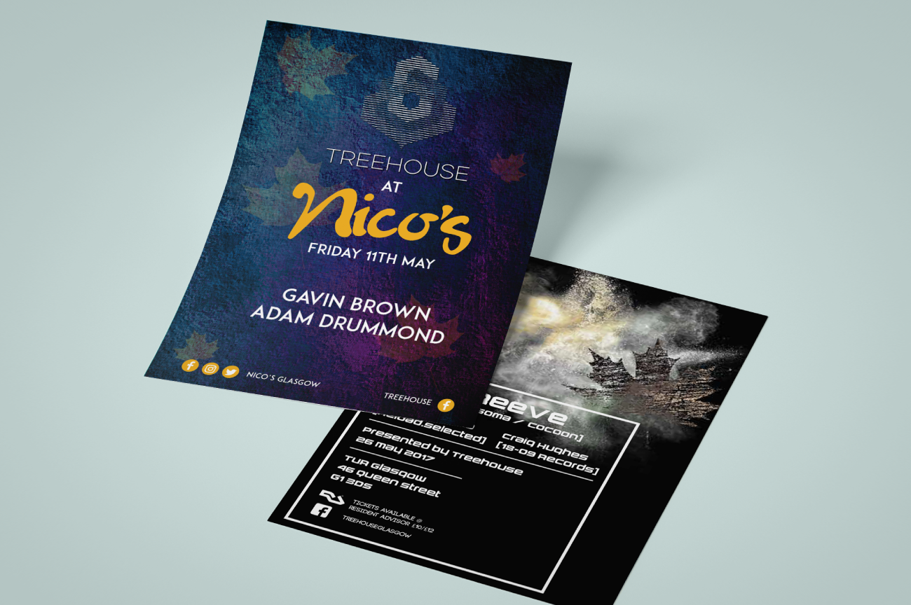 Treehouse hosts a series of techno club nights in Glasgow and as the designer in charge of this project I created a logo and style for the re-brand as well as numerous digital imagery for social media, promotional print artwork and business cards.